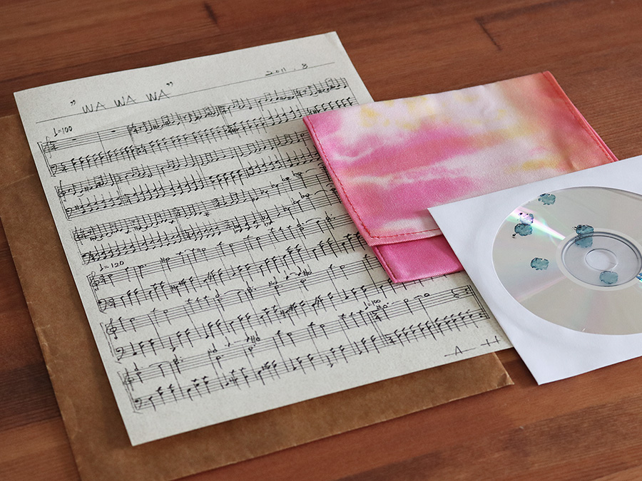 できあがったばかりの音楽を、お好みのパッケージ、データ形式で、お渡しします。ご要望の方には手縫いの布製ジャケット付きCD-R、手書きの楽譜もご用意できます、ギフト発送もいたします。